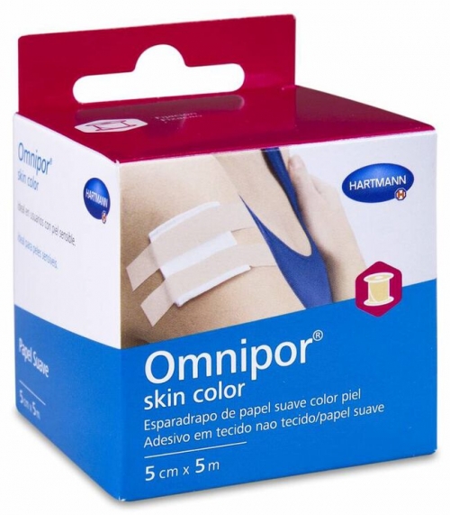Omnipor Skin Color Esparadrapo Hipoalérgico 5 m x 5 cm viene con un adhesivo de poliacrilato y tiene un papel suave con la superficie porosa, permitiendo transpirar a la herida o piel que cubra.
