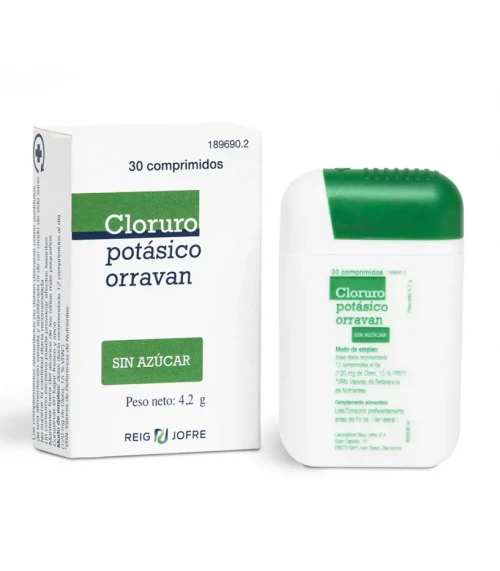 ORRAVAN CLORURO POTÁSICO se presenta en un envase con 30 comprimidos recubiertos, en una caja sellada que garantiza la integridad del producto y conserva sus propiedades a lo largo del tiempo. Cada comprimido contiene 600 mg de cloruro potásico, equivalente a 400 mg de potasio elemental.
