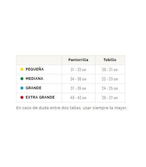 En caso de duda entre dos tallas, utilizar siempre la mayor.