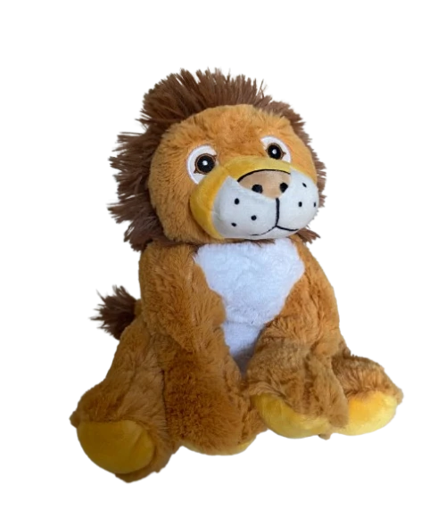 Peluche de un león muy suave con un relleno de semillas de trigo y flores secas de lavanda.