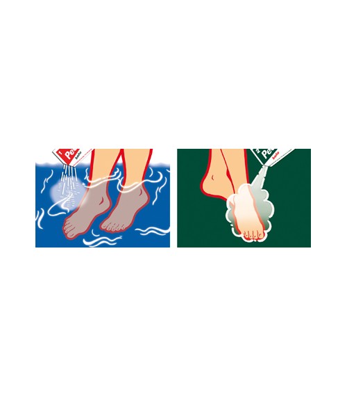 Contiene dos sobres, uno para hacer el baño de pies y otro para espolvorearlo sobre los pies una vez limpios tras el baño y secos.