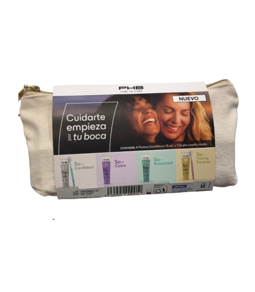 PHB TIME TO CARE NECESER 4 PASTAS DENTRÍFICAS 15 ML + 1 DUPLO CEPILLO MEDIO