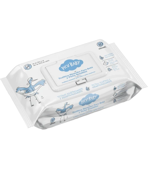 Toallitas frescas, sin alcohol, que limpian y cuidan la piel del bebé sin irritarla. Además, su suave perfume caracterísitico de Picu te enamorará.