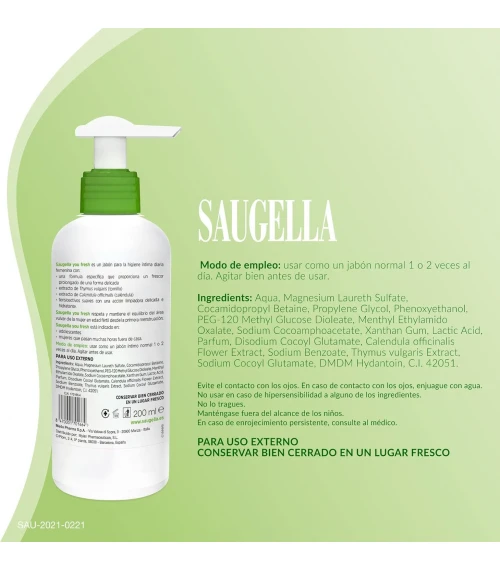 Compra Saugella You Fresh Jabon Intimo 200 ml en Farmacia Vizcaíno. Visita nuestra farmacia online y disfruta de envíos en 24/48h. Aprovecha el envío gratis disponible para compras superiores a 65€.