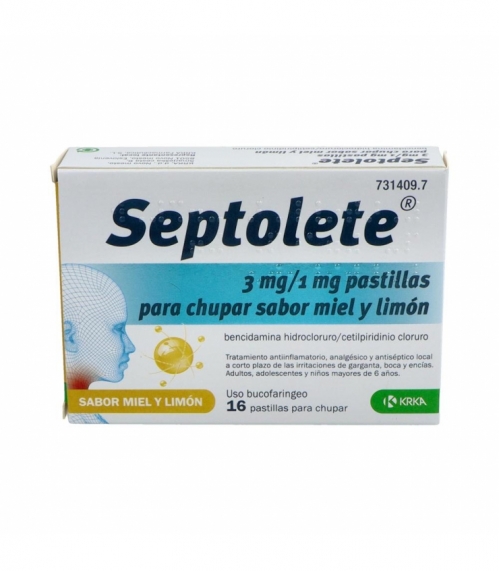 SEPTOLETE 3 MG/1 MG 16 PASTILLAS PARA CHUPAR (SABOR MIEL Y LIMON)