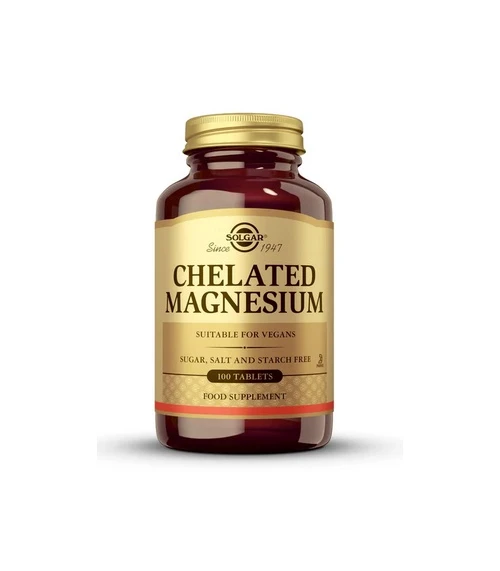 Solgar Magnesio Quelado 100 Comprimidos viene en un práctico envase de 100 comprimidos, ideal para un suministro prolongado. Cada comprimido está diseñado para ser fácil de tragar y es apto para vegetarianos, lo que lo convierte en una opción versátil para diferentes estilos de vida.
