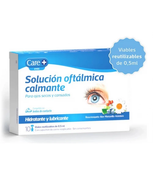 Compra Care Solución Oftálmica Calmante 10 Viales Reutilizables x 0,5 ml en Farmacia Vizcaíno, en nuestra farmacia online. Disfruta de envíos en 24/48h y envío gratis desde 65€. ¡Cuida tus ojos hoy mismo!