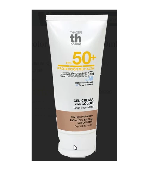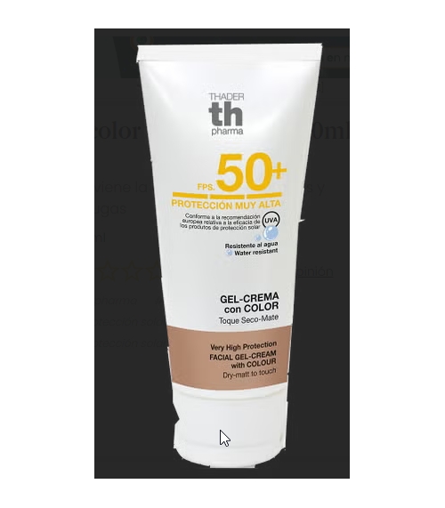 TH-SUN-GEL CREMA FACIAL COLOR SPF50 ARENA 50 ML es un protector solar facial con color diseñado para proteger tu piel de los dañinos rayos UV mientras unifica el tono de tu piel. Esta crema ligera ofrece una cobertura natural y uniforme, ideal para quienes buscan una protección eficiente sin renunciar a un acabado estético. Perfecta para el uso diario, su fórmula avanzada proporciona un escudo contra los rayos UVA y UVB, ayudando a prevenir el fotoenvejecimiento y las manchas solares.