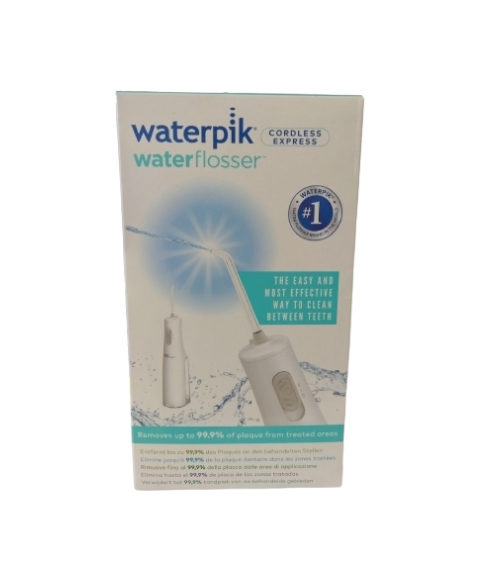 Es un irrigador oral inalámbrico. Elimina el 99,9% de la placa de las zonas tratadas. Clínicamente probado para ser hasta 2 veces más eficaz que el hilo dental en la mejor de la salud gingival.El waterpik irrigador bucal inalámbrico espress es un modelo totalmente hermético e impermeable, permitiendo el uso en la ducha.Incluye dos accesorios estándar de irrigación.Tiene 2 configuraciones de presión.